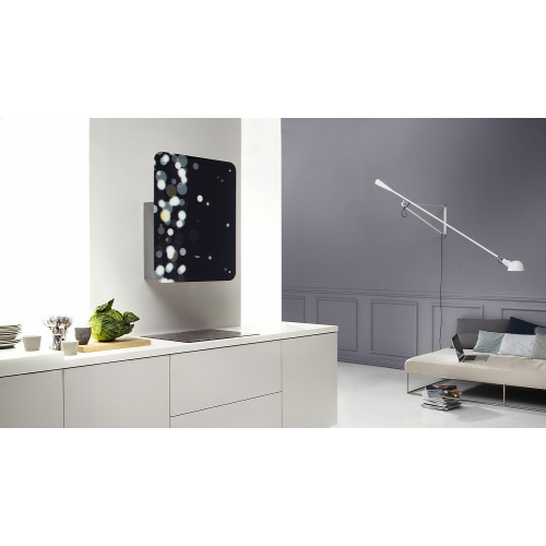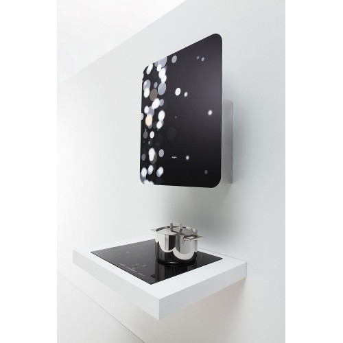 Каминная настенная вытяжка выполнена из нержавеющей стали и стекла. Декоративная панель органично дополняет серебристый корпус. Модель предназначена для работы в режиме отвода и циркуляции.